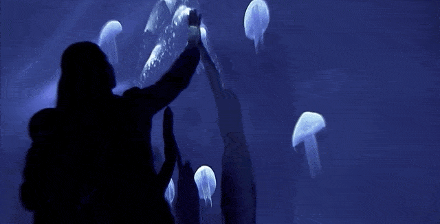 沉浸式海灣溪流體驗(yàn)是一個(gè)18米長(zhǎng),3米高的交互式投影環(huán)境,展示了強(qiáng)大而溫暖的海洋,并使游客接觸到其對(duì)食物鏈和魚類養(yǎng)育行為的影響。