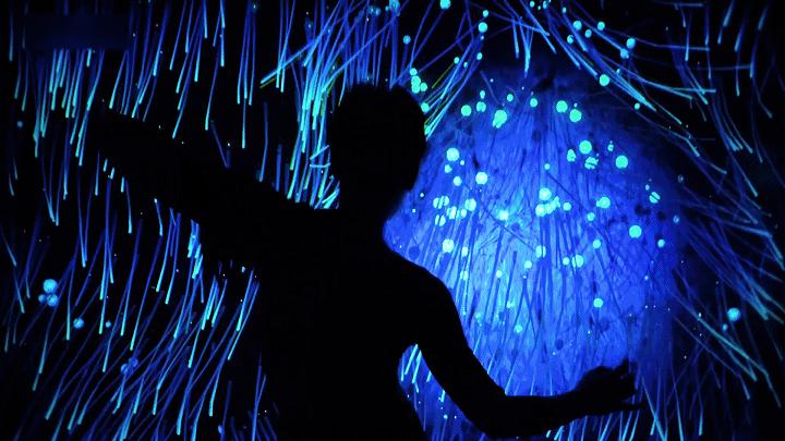 Lumin是一個(gè)受大自然啟發(fā)的生活裝置,取材于觀眾。它是黑暗洞穴中發(fā)光蠕蟲的實(shí)時(shí)模擬。它跟蹤訪客的手的位置,并將其轉(zhuǎn)換為虛擬世界中的光場(chǎng)和力場(chǎng)。這有助于創(chuàng)建不可見的連接,使觀眾成為藝術(shù)品的一部分。
