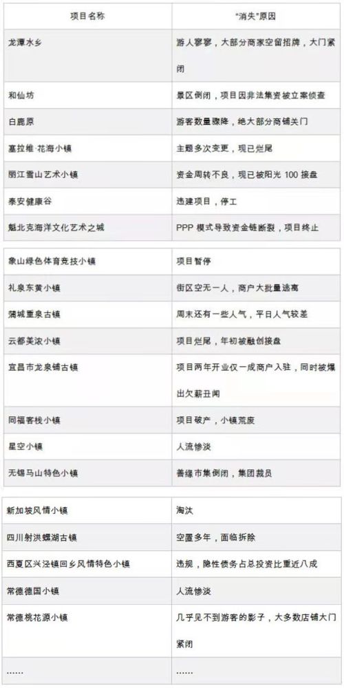 近日,一份“中國特色小鎮死亡名單”開始流傳,文章稱,不少特色小鎮資金鏈斷裂、商戶逃離甚至淪為“空城”,至少有100個“文旅小鎮”處于爛尾、倒閉狀態,成都龍潭水鄉、余姚模客小鎮、常德德國小鎮、白鹿原文化村等曾今都是網絡有名的網紅打卡點,典型的案例是投資3.5億的陜西白鹿原民俗文化村,開業后人氣一路下滑,不得不拆除,而且目前全國至少有100個“文旅小鎮”處于爛尾、倒閉狀態,特色小鎮從盛極一時到扎推關閉,最終淪為無人鎮。