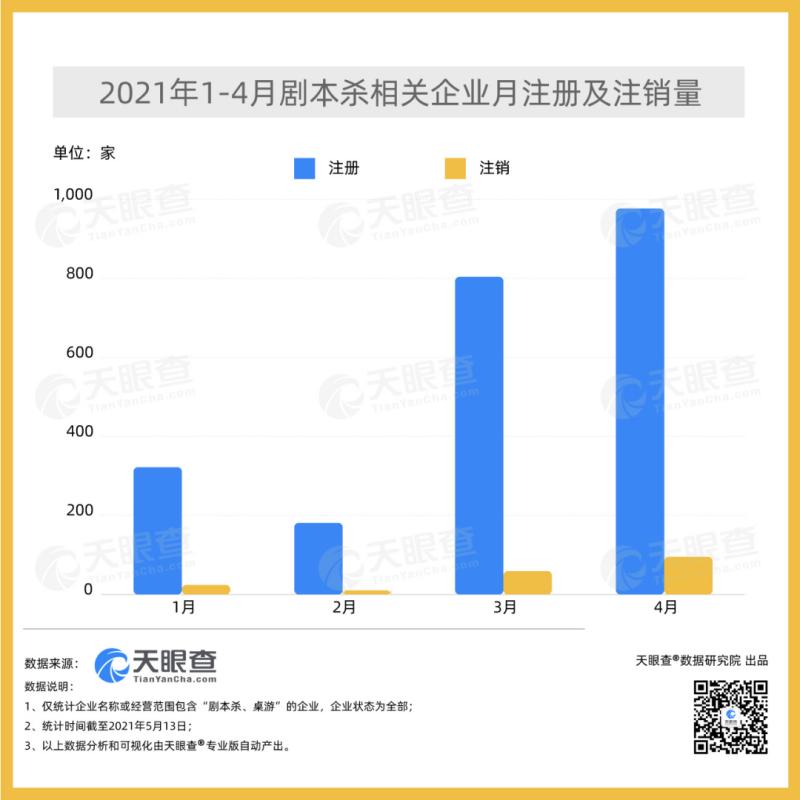 根據(jù)天眼查數(shù)據(jù)顯示,目前國內(nèi)有超過6500家名稱和經(jīng)營范圍包含“劇本殺”的企業(yè),這還只是企業(yè),據(jù)美團(tuán)數(shù)據(jù)顯示,截至2020年年底,劇本殺線下門店已突破3萬家,而在四月份閑置平臺(tái)數(shù)據(jù)顯示,四月平臺(tái)上以“倒閉了”為理由轉(zhuǎn)賣劇本、道具、門店桌椅等劇本殺商品的數(shù)量較上月增長了110%,是上個(gè)月的兩倍之多,截至5月13日,我國今年已注銷近200家劇本殺相關(guān)企業(yè)。其中,4月共注銷近100家相關(guān)企業(yè),環(huán)比增長102%。甚至整個(gè)數(shù)據(jù)還在繼續(xù)增長,廝殺仍在繼續(xù),越來越多的尾部門店開始被動(dòng)清場。