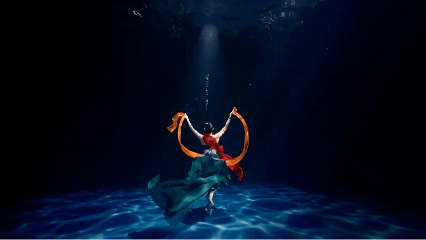 而這份拍案叫絕的創(chuàng)意雖然呈現(xiàn)效果很好,但是背地里的付出也是非常艱辛的,據(jù)《祈》的編導郭吉勇說,這個節(jié)目在拍攝時,工作人員在水下泡了將近26個小時,舞者不僅要面臨長期在水下可能造成的失溫、耳壓等風險,還要控制好面部表情和眼睛等微動作,經(jīng)歷了三次拍攝,最終才拍出這絕美的水下舞蹈,