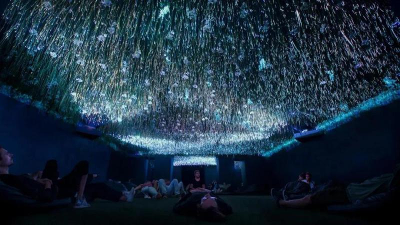 以120平米的倒掛草坪為投影載體,通過聲光、音樂,打造一幅超現實主義畫卷。將虛擬與現實、機器與人類、人工及天然等對比元素相融合,完成沉浸式互動體驗。