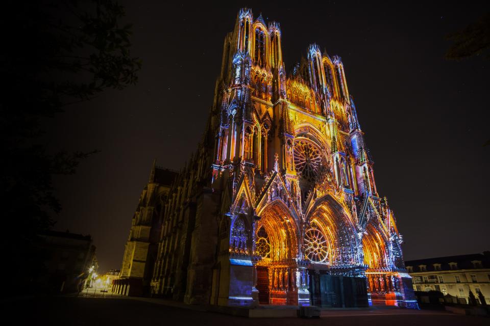 第一章從大教堂開始,提供有趣和互動的體驗,邀請公眾測試他們對歷史瑣事的了解,并借助投射在建筑立面上的線索。活動之后是身臨其境的視頻投影節目,讓游客沉浸在國王加冕典禮的情感中,展示標志著儀式的各種儀式。表演以一只攜帶圣壺的鴿子的出現而告終。從大教堂到大教堂,強大的視覺效果提供了兩個地點之間的共同線索。體驗的第二部分呈現在圣雷米大教堂的兩個立面上,從南側的象征性互動移動任務開始,與演出的歷史敘事相關。隨后是西側的投影映射表演,捕捉新國王到來后的傳統慶祝之夜。