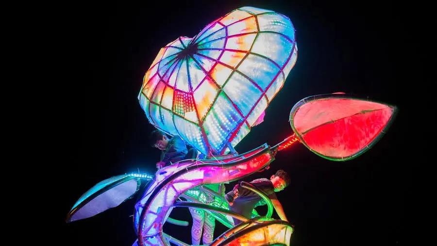 9米的花朵藝術裝置除了外型吸引人之外,最特別的,是這朵花是會隨著外界的變化而開始變化的!這樣的設計來自于他花蕊所設置的感應器。平時看來像是凋零的花朵,只要有任何車輛或世人經過、停留,他就會緩緩綻放,當人離開一段時間后,花朵又會慢慢收起,與玫瑰互動,營造浪漫氛圍。