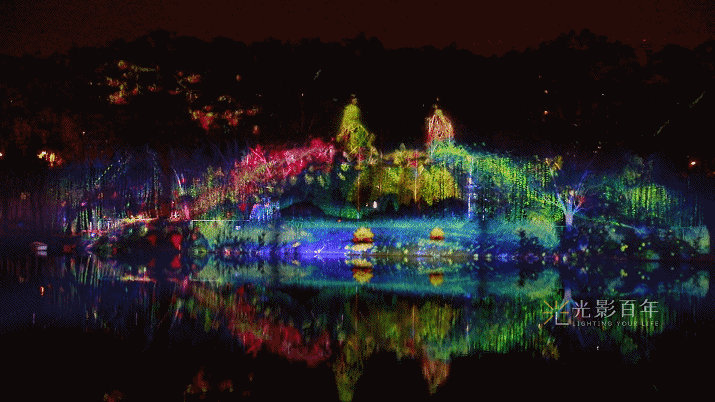 我們團隊的光影秀以“鵲橋之戀”為主題,以林為幕,以湖為鏡,用先進的數字創意光影技術,通過“七夕倒數、隔河相望、相擁起舞、緣定七夕”四大篇章,向人們講述牛郎織女每年七夕在鵲橋相會的浪漫傳說,讓中國古代著名的民間愛情故事煥發新的活力。