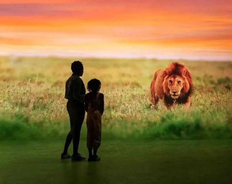 主題體驗館是一個約743.33平米的沉浸式裸眼3D空間,以在南非、肯帝亞等地實拍的野生動物內容為素材,帶領觀眾進入一個真實的動物世界;巨大屏幕、8k的視頻,配合嗅覺、味覺和觸覺的互動,空間內有觸覺系統,當游客走動時地面也會留下腳印,當動物奔騰時也能感受到地面的震動;甚至游客靠近樹時鳥兒會四散而開,擺動手臂能揮散掉空中的灰塵,深呼吸時也能聞到草原的塵土和枯草的味道,這些足以讓游客全身心體驗非洲野生自然的氣息。