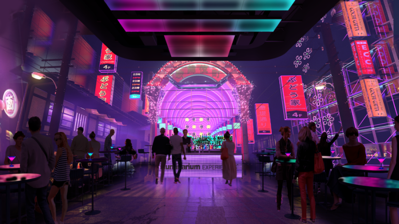 多功能廳&酒吧一次可容納350人就座用餐或800人的酒會,區別于傳統的酒吧,Illuminarium After Dark加入了裸眼3D以及VR技術,酒吧內可以自由切換7種沉浸式主題,可以在熱鬧的東京街頭碰杯,也可以在黃昏日落的斜坡飲酒賞日,又或者是在靜謐的深海處細細品酒。夜晚酒吧放肆后就可以來到Illuminarium Café(咖啡館)吃一頓豐盛的早餐。