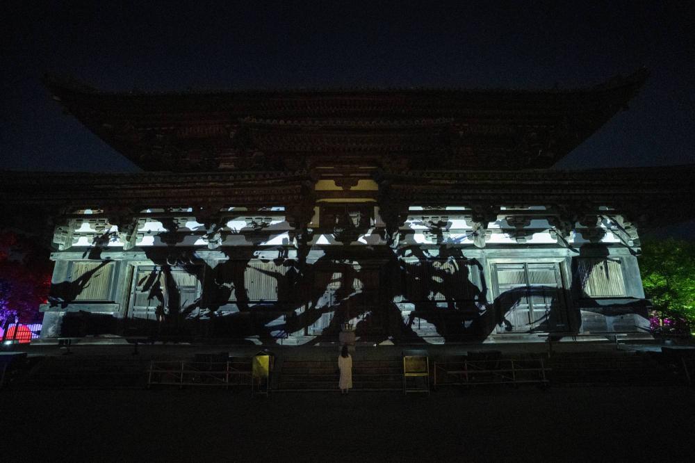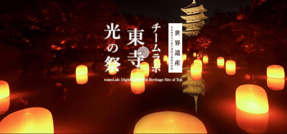 除了團(tuán)隊(duì)在其他展覽中共同的作品共振森林、生命之樹(shù)和發(fā)光呼應(yīng)的球體等互動(dòng)裝置外,還有針對(duì)東寺特別創(chuàng)造的藝術(shù)作品。
