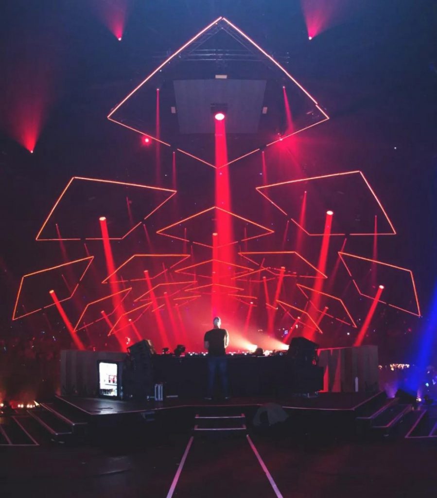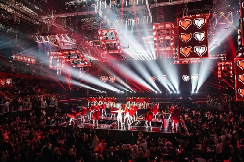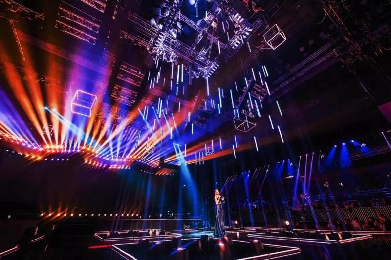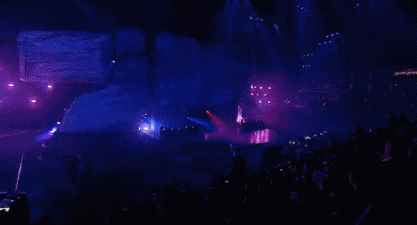 當大銀幕的影像配合現場表演而變幻,同樣超酷的燈光矩陣升降與激光光束表演、以及“科技質感化”亮起的碎片燈框,鏤空設計、煙霧系統等創意藝術運用,將整個舞臺打造成一個穿透性的超時空立體畫面。