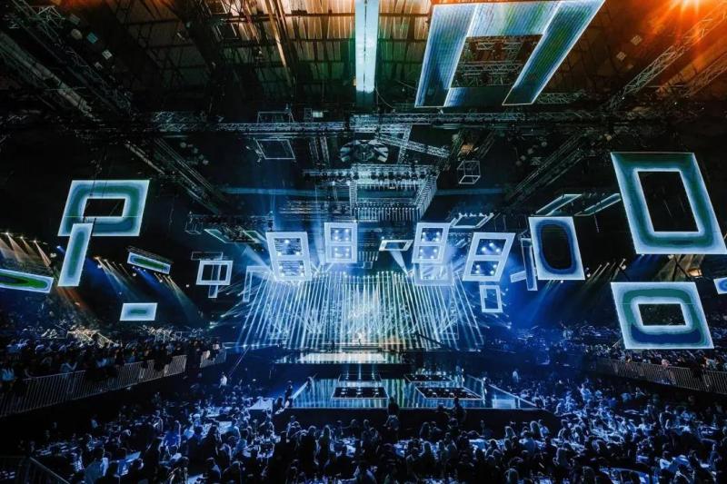 英雄出場的激烈炫戰,仿佛將觀眾帶入DOTA2的炫酷世界。多層數字創意巨幕組合,讓畫面質感更有層次以及延伸的效果。