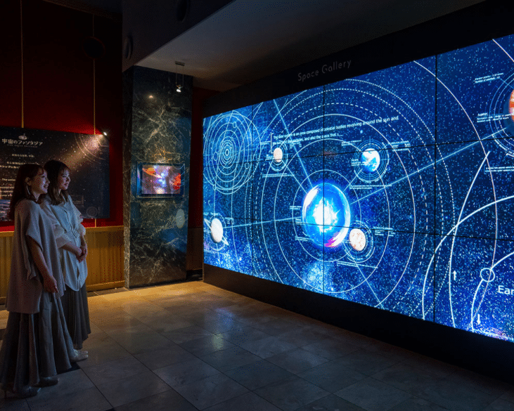 宇宙主題空間,在這里能看到宇宙行星的布局影像,然后通過地面互動在腳下畫出十二星座,最后一期出發(fā)去探索宇宙的奧妙。