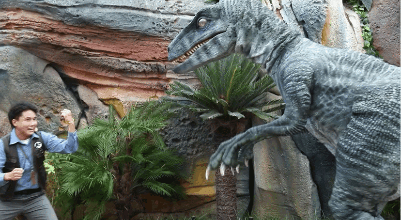 接下來來到侏羅紀世界,這里深度還原了幾千萬年前的侏羅紀時期,游客會看到各種類的恐龍和兇猛的猛獸,可以坐上全地形豪華自動系統,在恐龍世界里的逃生訓練,在八米的高空中去俯瞰整個景區。