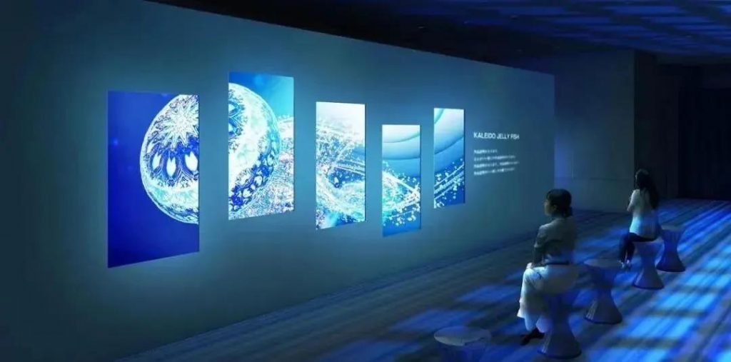 首先是團隊創始人村松亮太郎的作品KALEIDO JELLYFISH,把深海藏入鏡中,水母漂浮其中,讓人浮躁的內心慢慢趨于平靜。