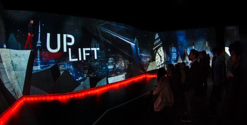 為了響應 FlyOver Canada提出的要求和參數,Moment Factory團隊帶來了在多媒體講故事方面的專業知識,為客人提供一種親密的體驗,揭示日常生活中的微妙之美。創建了Uplift,這是一個多媒體節目,通過五個加拿大人的故事和他們的熱情突出了該國的人民和風景。團隊創造了一個原創的布景設計和定制的建筑空間。Uplift充分利用了包含2D和3D動畫以及 360度視頻投影映射的多面畫布。這個概念通過在加拿大令人驚嘆的自然和城市環境中拍攝的視頻讓觀眾近距離觀察角色的生活。故事的范圍從森林漫步到城市跑酷,跟隨角色的目光注視著他們的風景。最后,當一個年輕女孩通過窗戶偷看觀眾時,視線轉向了演出的客人。原來游客也是故事的一部分。