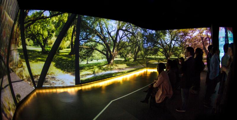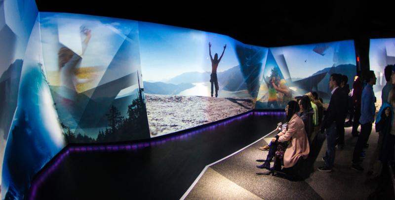 2012年,總部位于溫哥華的FlyOver Canada與Moment Factory接洽,希望為他們的沉浸式多感官騎行創建一個預展,讓客人在6000公里的虛擬飛行中穿越加拿大的風景。他們希望提供一種介紹體驗,以建立預期并有助于整體騎行體驗。該項目面臨的挑戰是創造一種多媒體體驗,在不與主要景點的視覺震撼體驗相競爭的情況下,補充 FlyOver Canada的騎行體驗。