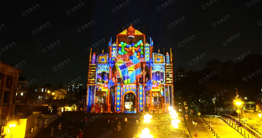 澳門的標(biāo)志性建筑物之一,也是世界文化遺產(chǎn)之一,這是澳門迎來回歸祖國20周年紀(jì)念日,以“慶祝澳門特別行政區(qū)成立20周年”為主題打造的3D光影秀