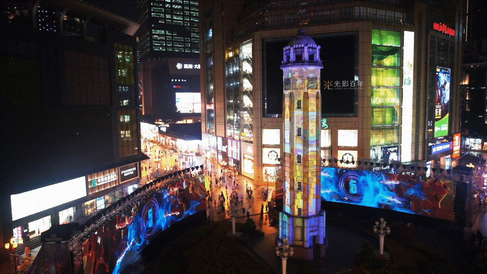 以解放碑碑體為背景,賽博朋克未來科技城市概念為藍(lán)本,一段震撼十足的3D光影秀在不夜城重慶開場,揭開 “夜重慶 潮生活”的神秘面紗。