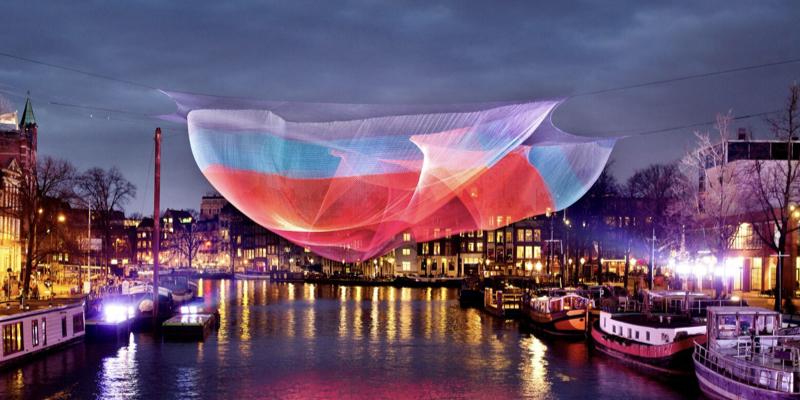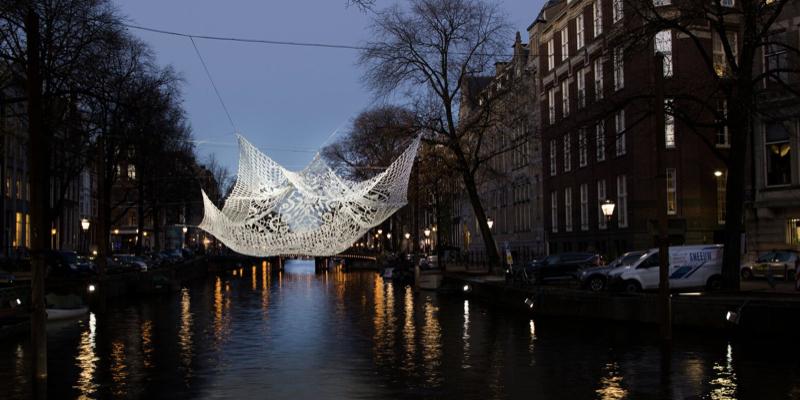《1.26 Amsterdam》?:該作品是由特制的金屬材料編制成網,在燈光的照耀下隨風舞動。