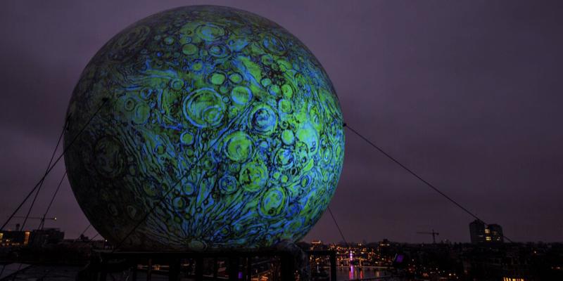 《Moonburn》?:這是一個直徑六米的巨大“月亮”,在高樓散發著光芒,遠遠望去像是在空中的明月一般。