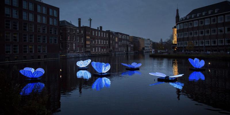 《Butterfly Effect》?:這是日本藝術家Masamichi Shimada所創作,眾多光之蝴蝶在運河上矗立,當游船經過時,蝴蝶的翅膀會會變換不同的顏色同過往的船只打招呼。