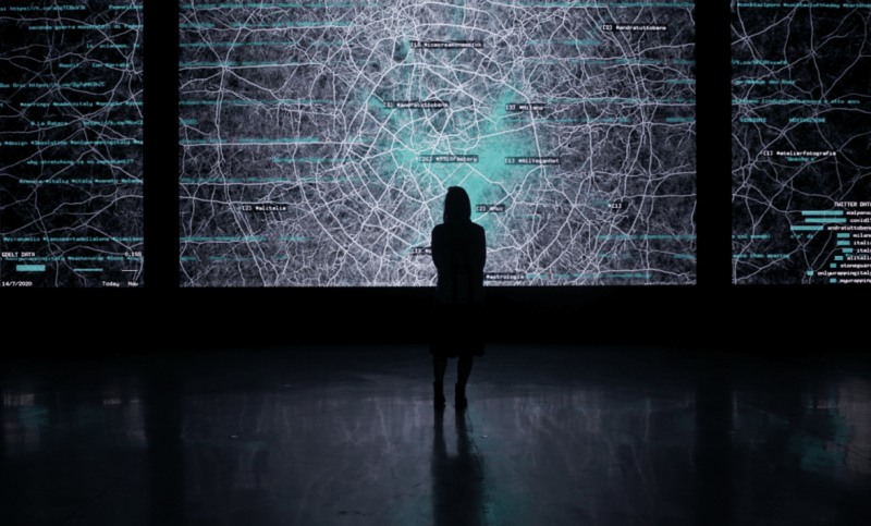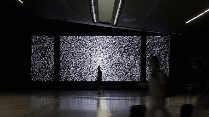 “Falin Mynd”是由來自意大利的藝術團隊fuse *創(chuàng)作的視聽裝置,該裝置攝影領域的潛像概念中汲取靈感:光在膠片上留下的無形印記,只有在膠片顯影后才會顯現(xiàn)出來,游客生成的數(shù)據(jù)生成抽象的數(shù)字景觀,留下他們實時分析和解釋的痕跡。通過這種方式,作品使個人與社區(qū)之間的不解之緣可見,突出了兩個實體如何相互影響,改變了對我們周圍由地點、人物、顏色和感覺組成的現(xiàn)實的感知。因此,這些數(shù)據(jù)構成了城市的無形圖像。