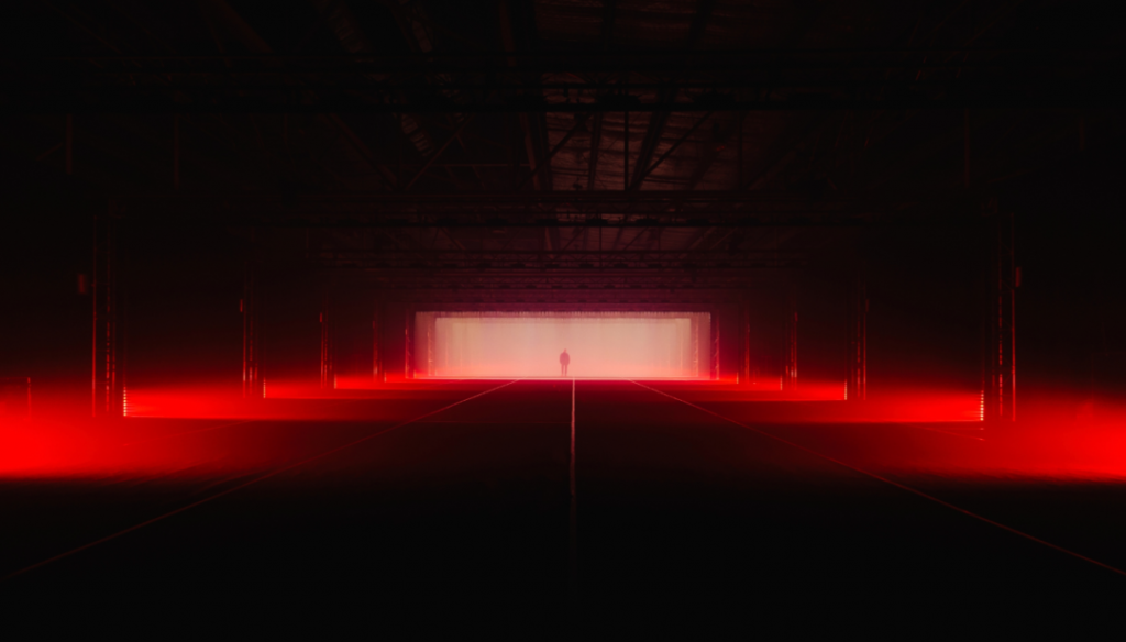 像科幻場景一樣,這是一個黑暗又充滿神秘燈光的巨大空間,富有力量的低音讓身體震動。數字燈光將空間和時間的分離,創造出無形的邊緣,讓人質疑現實的定義,讓你陷入在這虛無的夢境中。