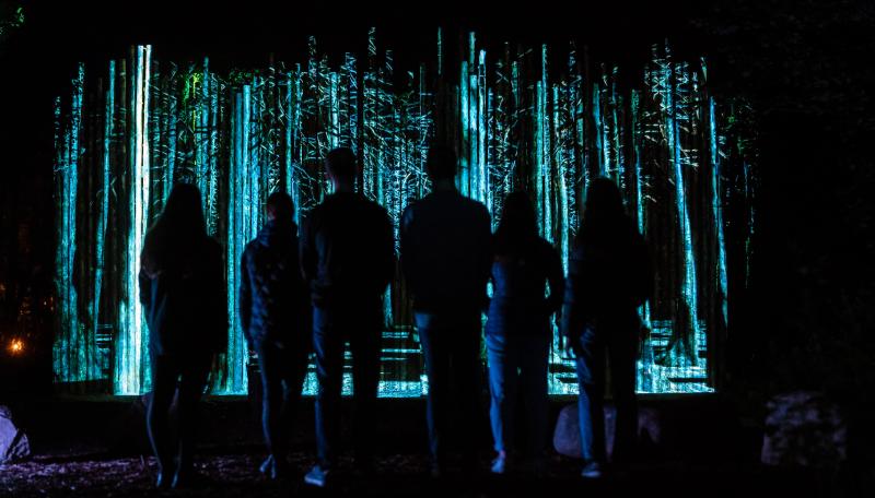 生活在寒冷的加拿大東北部的母系氏族Wendake稱自己是狼族人。作為加拿大土著,他們世代以打獵為生,在這片神秘的土地上,Wendake文化被很好地保留下來。Onhwa’ Lumina 夜游讓這里的文化綻放光芒,讓前來這里的游客感受到人類最早的淳樸生活方式,理解Wendake人熱愛自然,尊重自然,順應(yīng)自然。Moment Factory深受傳統(tǒng)習(xí)俗和祖?zhèn)魃罘绞降膯l(fā),通過其創(chuàng)始符號(hào)、傳統(tǒng)和儀式,在 1.2 公里的森林小徑上,民族音樂和舞蹈的精髓始終存在。七個(gè)沉浸式多媒體區(qū),裝置包括燈光設(shè)計(jì)、視頻投影、場景設(shè)計(jì)和原聲帶,照亮 Huron-Wendat 民族的文化和遺產(chǎn)。
