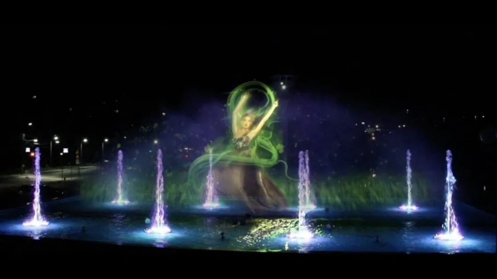 Four Elements水幕投影秀是多媒體藝術(shù)家Laser Studio專門為烏克蘭烏曼慶典的城市設計的。這個10分鐘的表演由4集組成,運用水幕、噴泉、音樂、全彩激光等技術(shù)呈現(xiàn)一個多媒體水幕光影秀,展示了4個幾個女孩團結(jié)起來,抗爭黑暗,可歌可泣的故事。