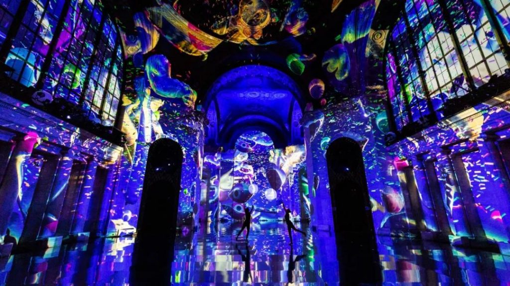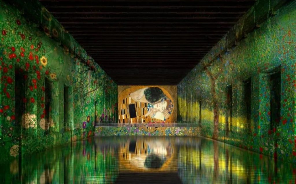 Culturespaces是法國(guó)著名的博物館與展陳工作室。他們將位于法國(guó)第二次世界大戰(zhàn)的潛艇基地改建成了世界最大的數(shù)字藝術(shù)中心—光之水池(Bassins de Lumières)。展館空間總投影面積為12,000平方米,多達(dá)90臺(tái)視頻投影儀和80個(gè)揚(yáng)聲器,用來(lái)呈現(xiàn)藝術(shù)家的作品。
