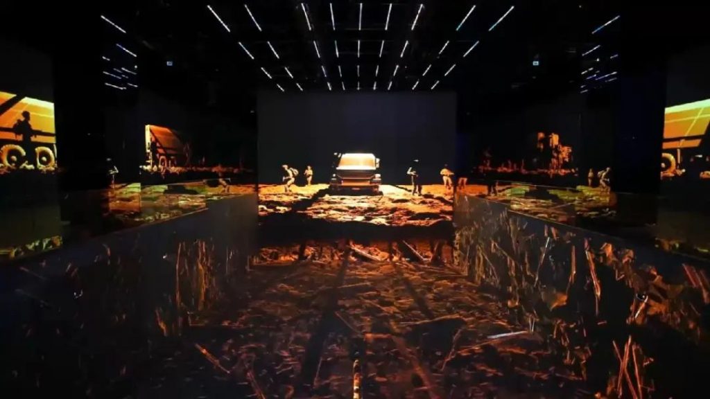 360°投影將影像與音樂(lè)配合不僅讓畫面動(dòng)起來(lái),而且將整個(gè)空間規(guī)劃組合運(yùn)行方式,將藝術(shù)家的代表作品重新加入腳本與聲光效果后的再創(chuàng)作,讓觀者融入其中。