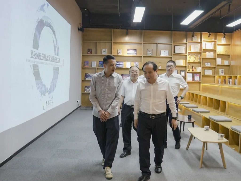 考察過程中,黃浩先生就公司發展概況、發展歷程、核心優勢等做了簡單介紹。座談會上,黃浩先生首先歡迎書記一行的到訪,隨后介紹了公司在數字文化創意領域(數字夜游、數字秀演、地標光影、數字藝術等)上的重點項目和突出成果,以及公司近年來在文旅技術創新、內容創新上的亮眼表現,最后圍繞黃果樹旅游業態高質量發展展開了探討交流。