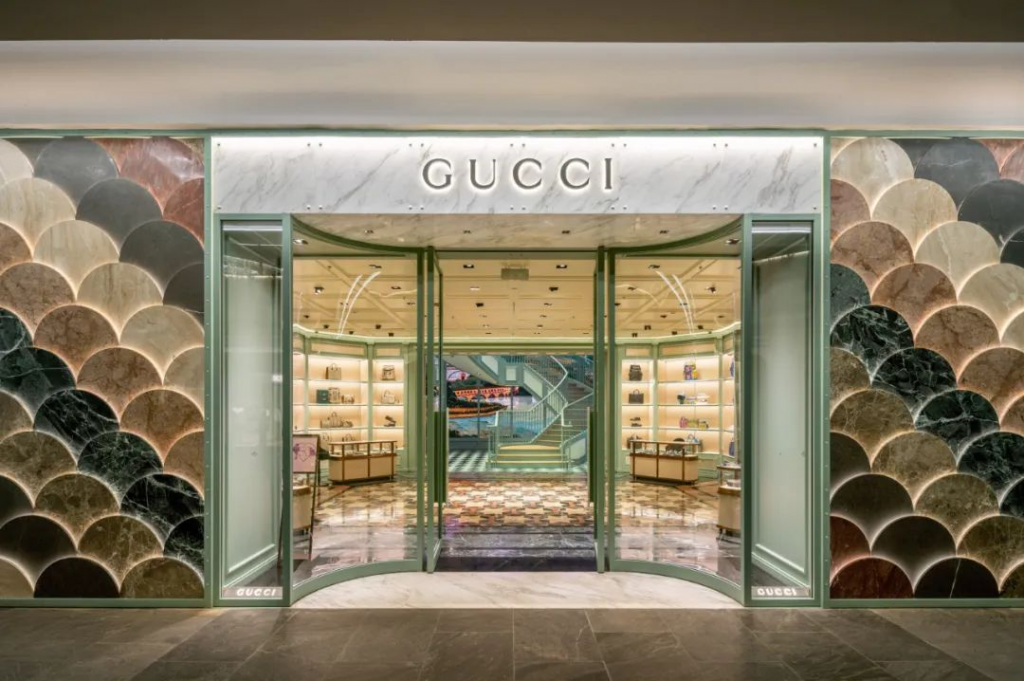 GUCCI 委托 Random Studio 為中國成都一家旗艦店進(jìn)行室內(nèi)設(shè)計(jì),從商店的古典建筑、GUCCI 品牌家鄉(xiāng)佛羅倫薩的文藝復(fù)興傳統(tǒng)以及成都本身的自然特征中汲取靈感,探索巨大的數(shù)字景觀并將屏幕作為建筑材料使用。