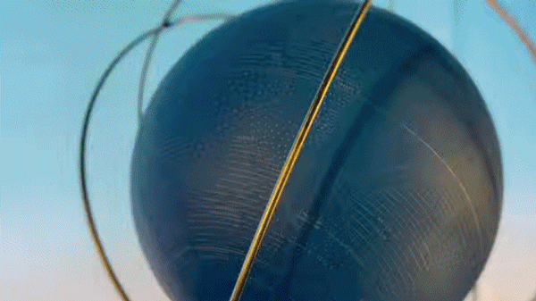 手表是整個(gè)布景設(shè)計(jì)的核心,它圍繞地球旋轉(zhuǎn)的衛(wèi)星,賦予視頻風(fēng)景時(shí)間性,并通過雕塑、裝置、互動(dòng)設(shè)備、視頻映射等技術(shù)來完成Hermès旅行的象征性和展示手表的功能性。