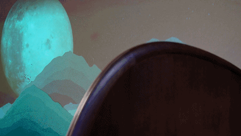 投影的月亮由一個咖啡杯控制——移動咖啡杯,月亮也會隨之移動。此外,游客還可以通過翻轉沙漏,來改變風景壁畫。