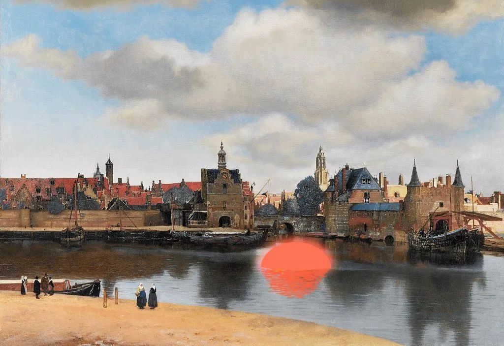 裝置由 Mike Rijnierse 和 Ludmila Rodrigues 設計,靈感來自電影和繪畫中對日落的描繪。一個巨大的充氣太陽,在白天和夜晚發出充滿活力的紅光。