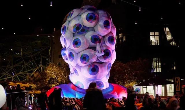 在一個日益數字化的世界里,人們的注意力在不斷分散,這個8米高的巨大充氣結構由國際藝術團體 CoolShit 的幾十個彩色眼球組成,令人有種被監(jiān)視的詭異感。