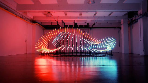 《Electric Dandelions》高達28英尺,曾在紐約市、多倫多、洛杉磯和耶路撒冷展出,是一種別致的蒲公英花造型燈,散發(fā)出絢麗的色彩和閃爍的燈光,為整個城市帶來活力。