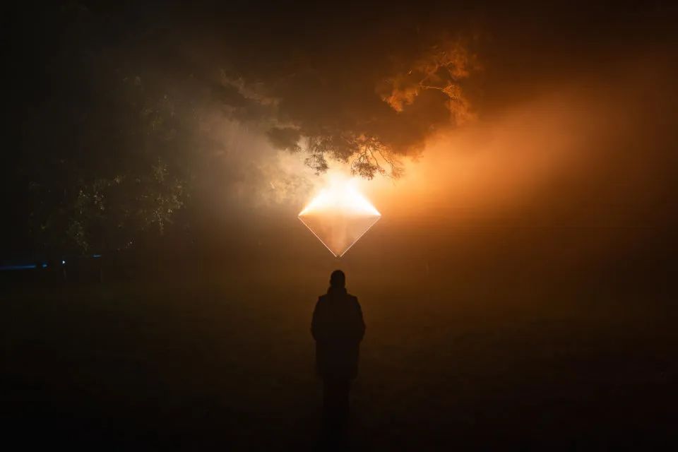 穿過云霧縹緲的隧道,進入金色夕陽薄霧中,在樹林里,旋轉的 LED 和聲波頻率將森林中隱藏的波長引導出來,而在樹林深處,樹木用獨特的音樂與發(fā)光的水晶燈進行交流。