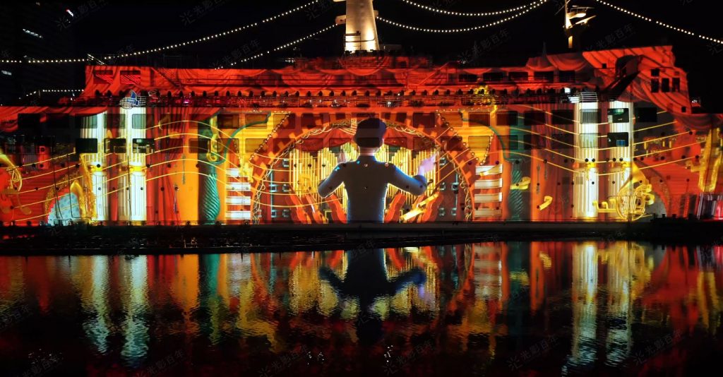 3D技術(shù)的引入使得燈光秀更加震撼。通過使用投影技術(shù),建筑物的表面成為了巨大的畫布,藝術(shù)家們可以在其上展示無限創(chuàng)意。無論是在建筑的外墻上呈現(xiàn)出栩栩如生的動(dòng)態(tài)圖像,還是通過投影映射在建筑的立面上創(chuàng)造出虛擬的景觀,3D燈光秀為建筑注入了新的生命。觀眾不再僅僅是看到建筑,而是被引導(dǎo)進(jìn)入一個(gè)充滿魔幻色彩的世界。