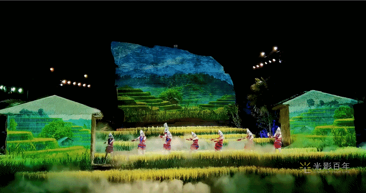 原生別具特色的自然舞臺(tái),與沖擊視聽(tīng)的裸眼3D燈光秀相結(jié)合,搭配精彩紛呈的舞美演藝,展現(xiàn)出七彩云南民族大團(tuán)結(jié)與生物多樣性的特色文化。