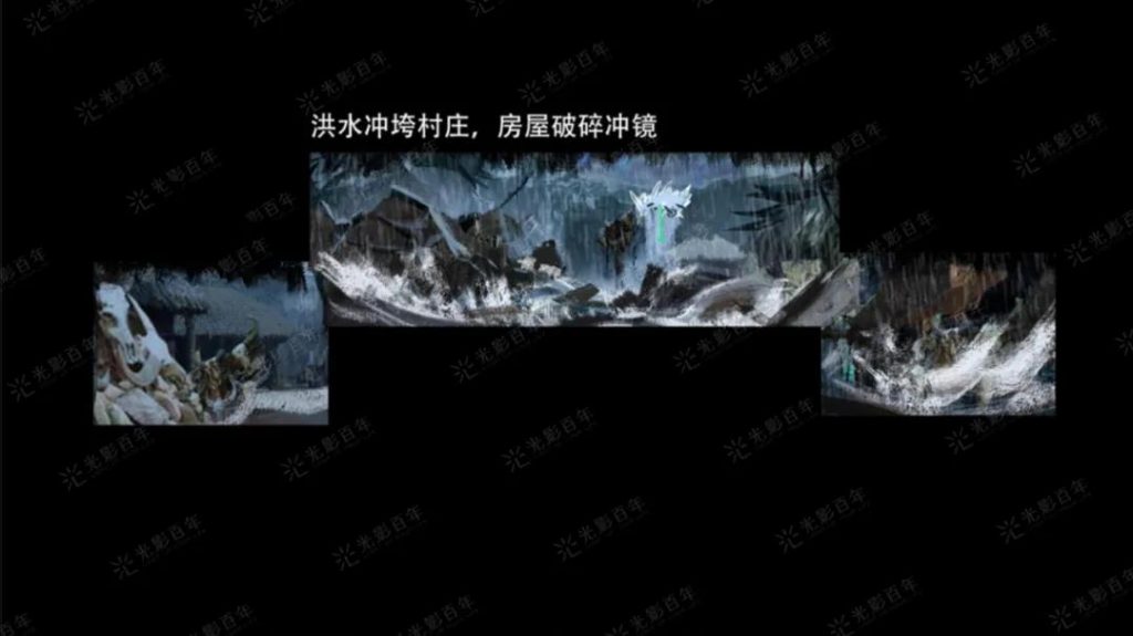 根據(jù)視效導(dǎo)演組設(shè)計(jì),整個(gè)視效組影視組,在這60個(gè)多日夜里,進(jìn)行手稿設(shè)計(jì)、原畫(huà)設(shè)計(jì)、動(dòng)畫(huà)設(shè)計(jì)、三維打造、特效打造,最大限度的對(duì)各大場(chǎng)景搭建、人物角色、故事環(huán)境,等,進(jìn)行深化創(chuàng)作。