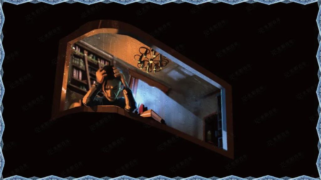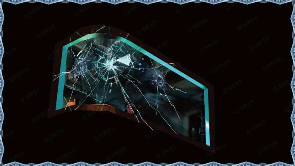 影視制作團隊根據分鏡設計及最佳視角,進行強立體感的三維場景搭建,例如設計書桌作為畫面前景,既符合游戲的劇情,又突出場景的立體空間感;在特效解算上,特別是玻璃破碎的這一關鍵場景上,為了呈現最具沖擊力的破碎效果,我們對破碎點進行反復的測試;以及其他:材質燈光渲染,頭發、服裝、煙霧,等特效解算。