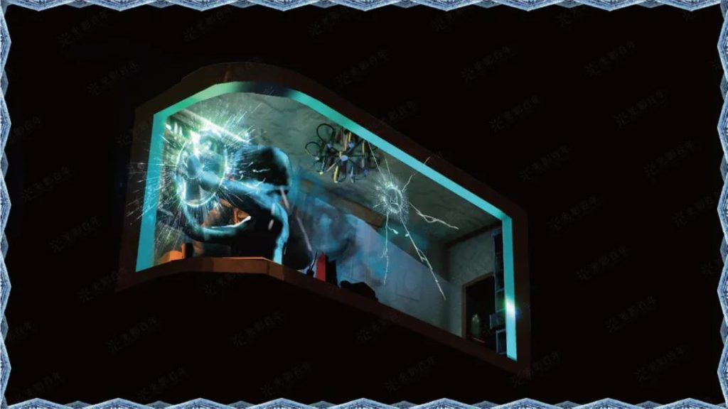 結合裸眼3D立體感需求,于屏內設計場景空間縱深感,于最佳視角表達好核心內容情節,于屏外設計突破視效的張力表演。以達虛實混合,增加畫面可信感。