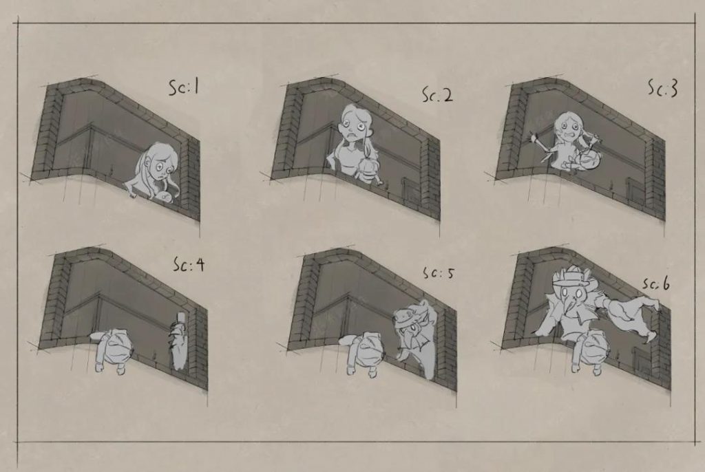 在畫面風格上,我們首先對《第五人格》設計語言進行了深度研究,在延續了荒誕哥特的基調上,同時結合本土化運營的需求,融入了日本kawai的美學風格,并根據曲面裸眼3D屏最佳視角,開始腳本創作。