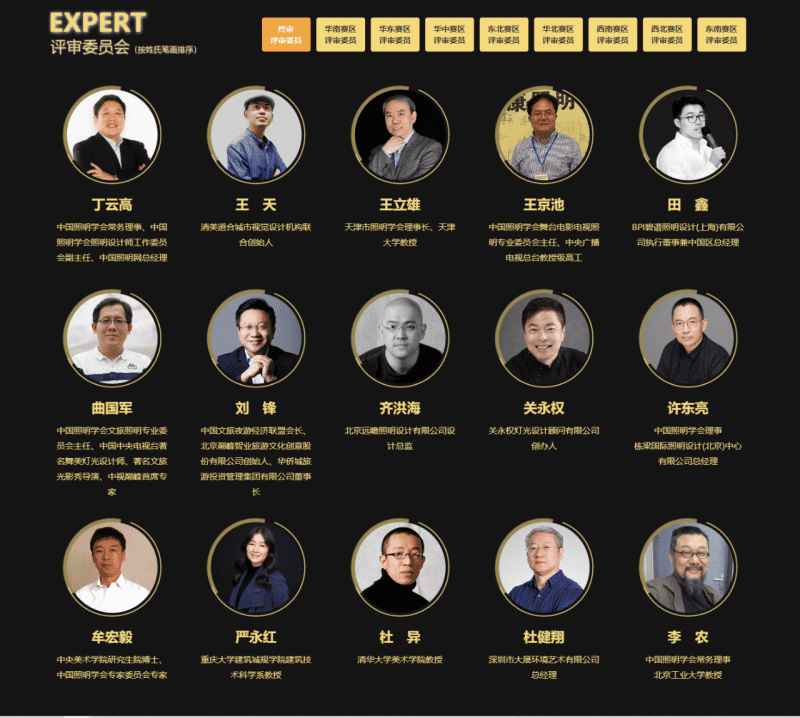 本年度金手指獎(jiǎng)終審評(píng)委陣容龐大,由照明業(yè)界的知名專家、設(shè)計(jì)師組成,分別為: