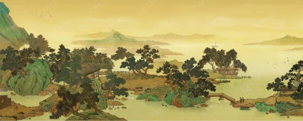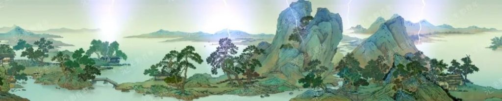 并對古代國畫的工藝流程進行深入學習并與現代數字技術做技法結合,從線稿到赭石打底再到多層次上色直至成品,努力營造出數字動態式的南宋時期審美意境。