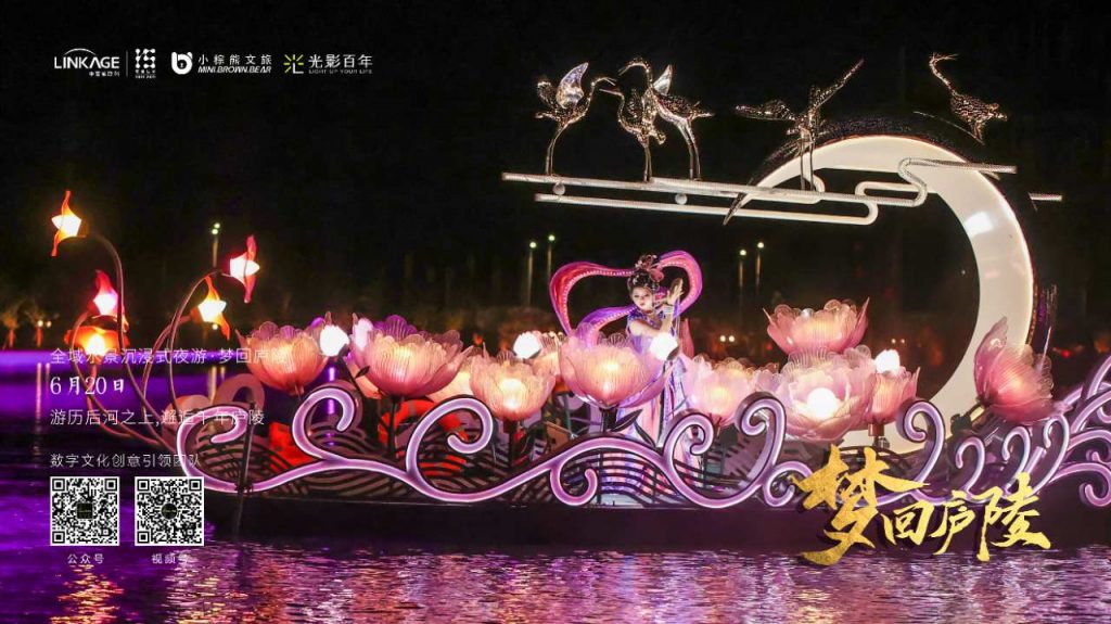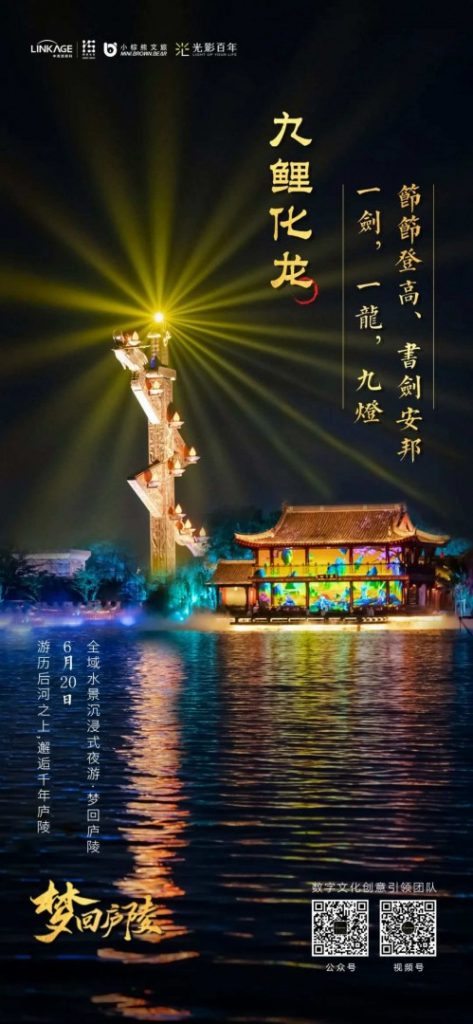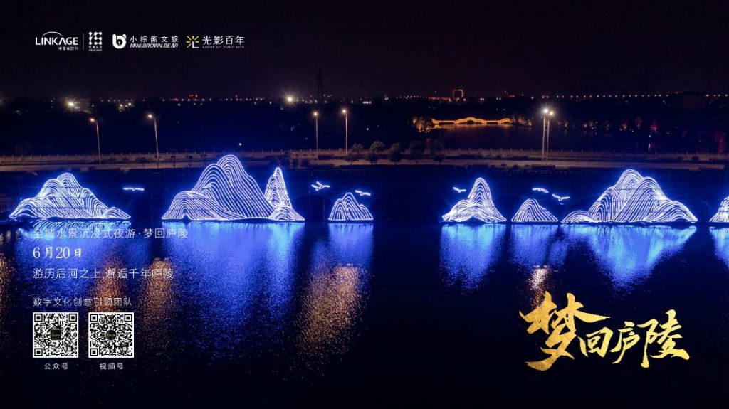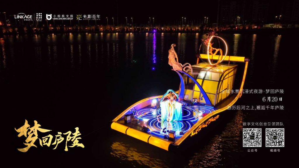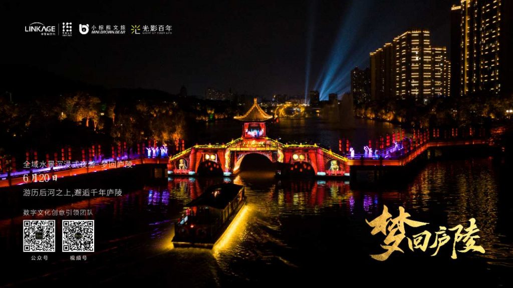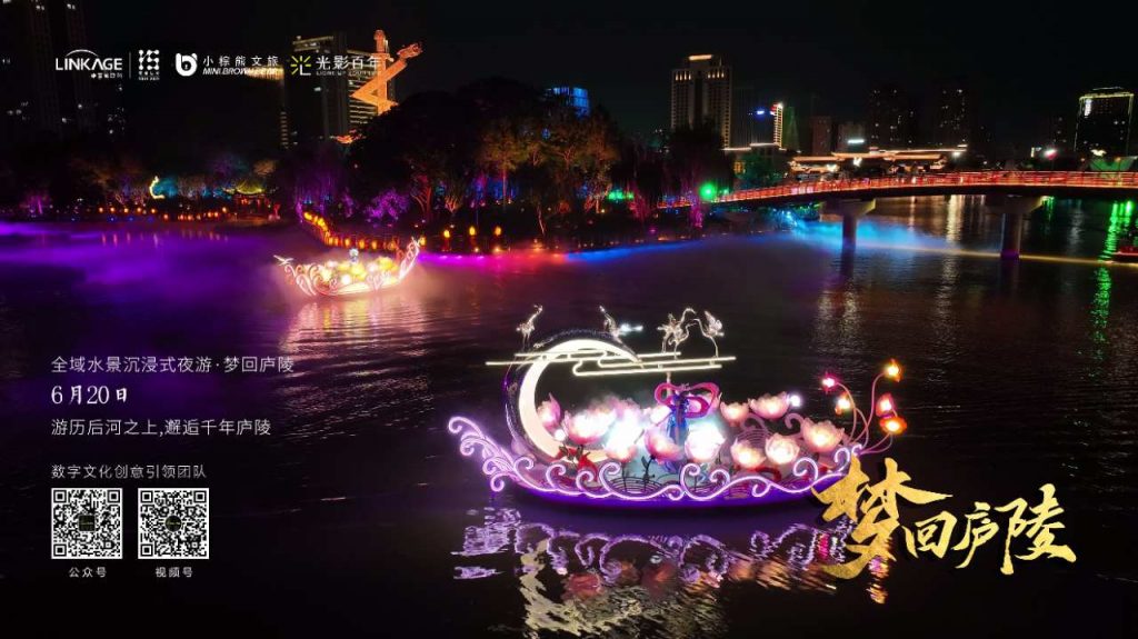 以“夢回廬陵”為主題,以橋為引,以船為媒,借助極具多樣性的數字創意手段,將千年廬陵文化融入實景演藝;打造出5.5公里的行進式沉浸式的人文夜游體驗;