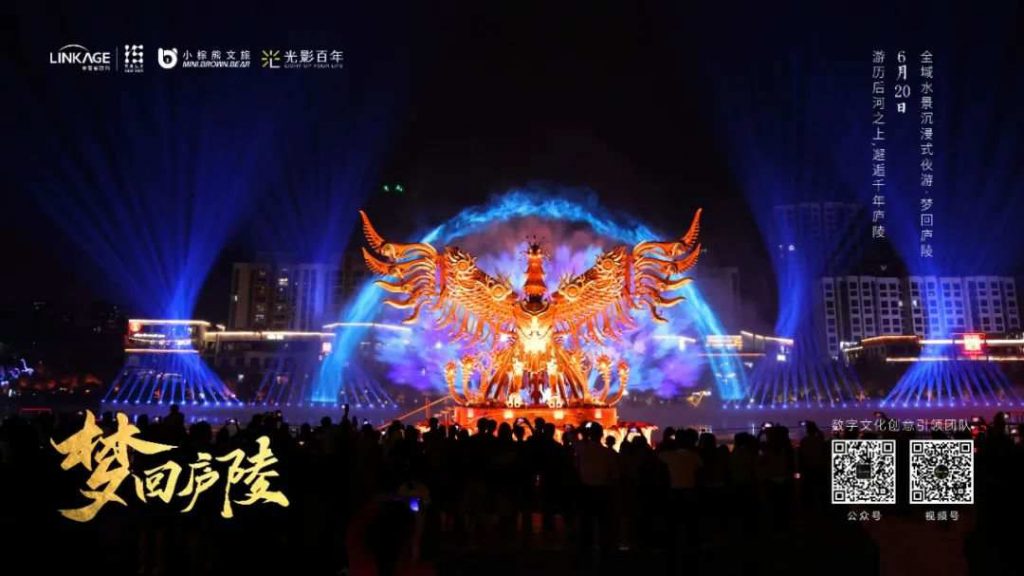 游歷后河之上,邂逅千年廬陵 ,通過光影、噴泉、水幕、藝術、裝置、戲劇、音樂、歌舞等科技手段的創意結合與設計,呈現一幅聚焦廬陵最美瞬間,由瞬間衍化情感,由情感投射文化,由文化彰顯特色的大美畫卷。