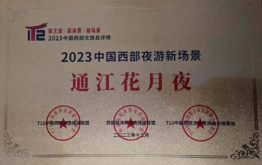2023年11月,在第四屆T12中國西部文旅發(fā)展峰會上,通江花月夜獲評2023中國西部夜游新場景,是全省唯一入選此次獎項的文旅景點。
